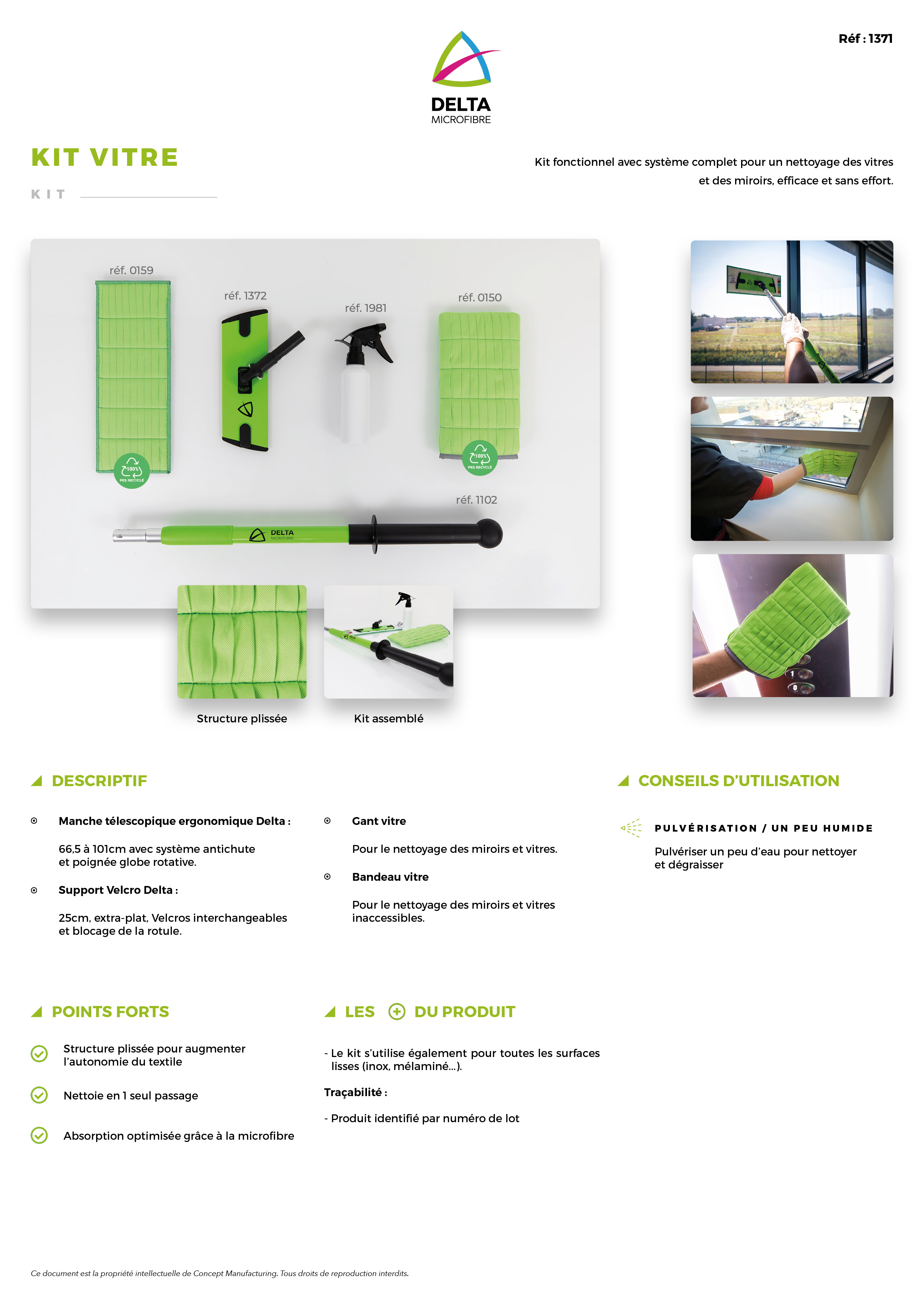 Pour les vitres encrassées, il est conseillé d’utiliser avec ce kit le bandeau tri-composition – 30cm qui permet d’enlever les salissures adhérentes.